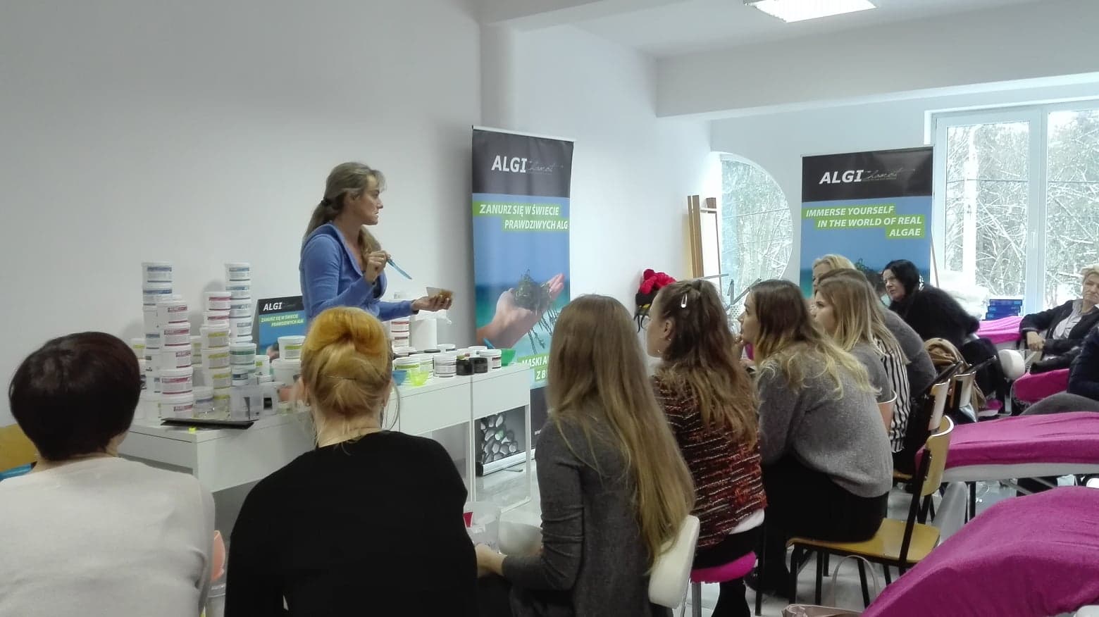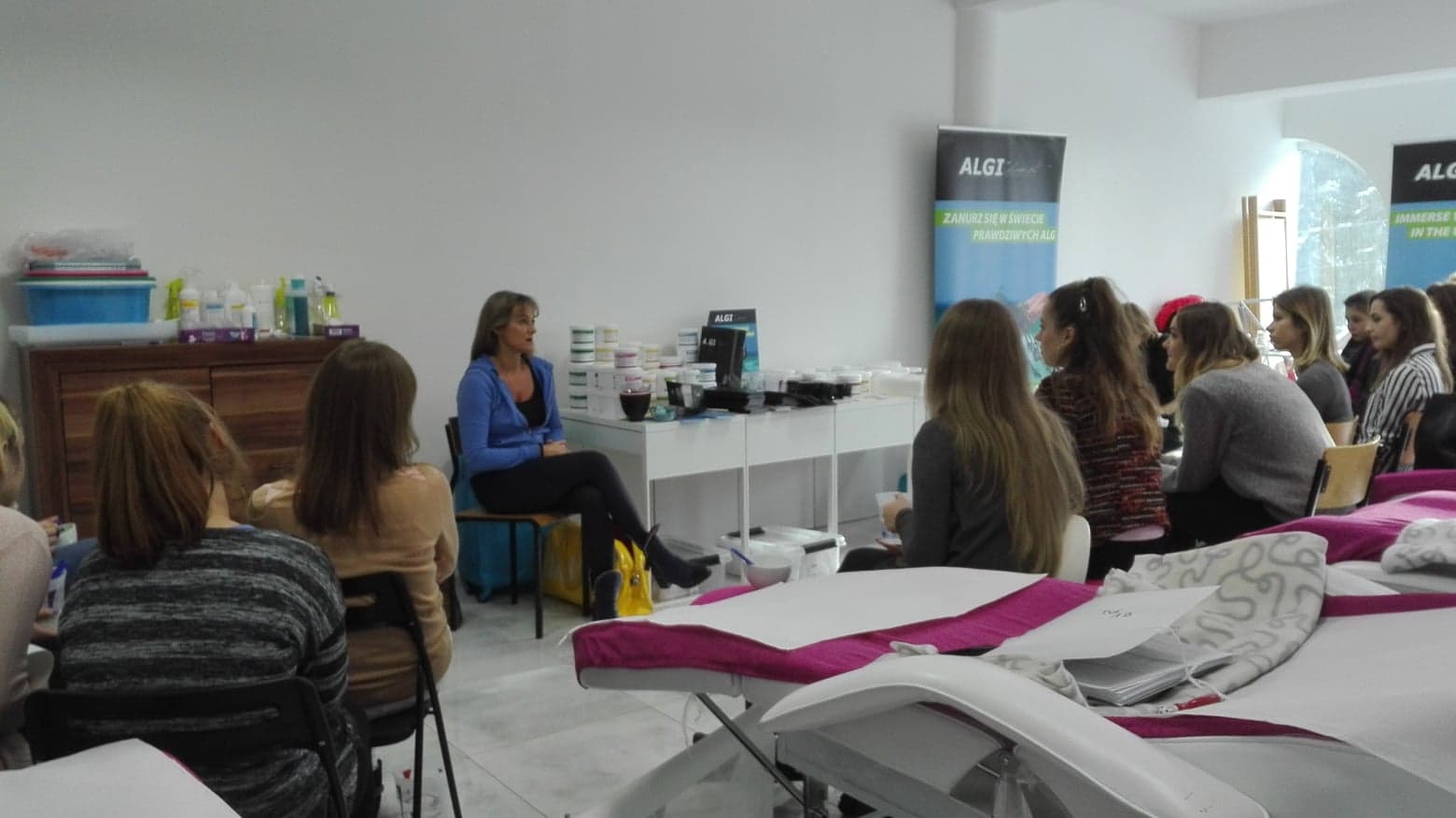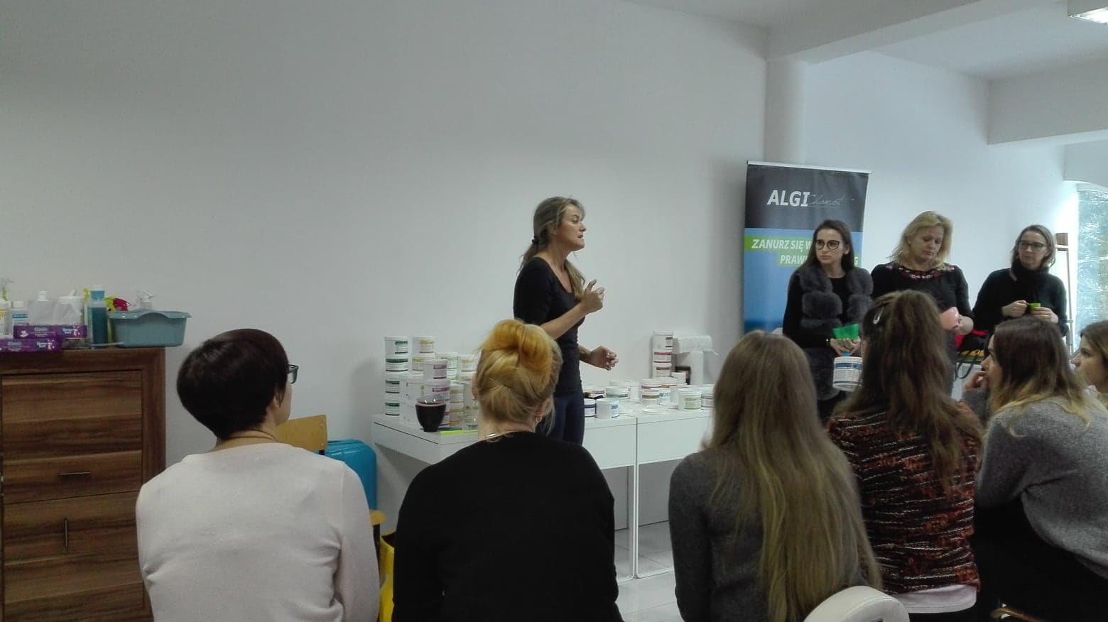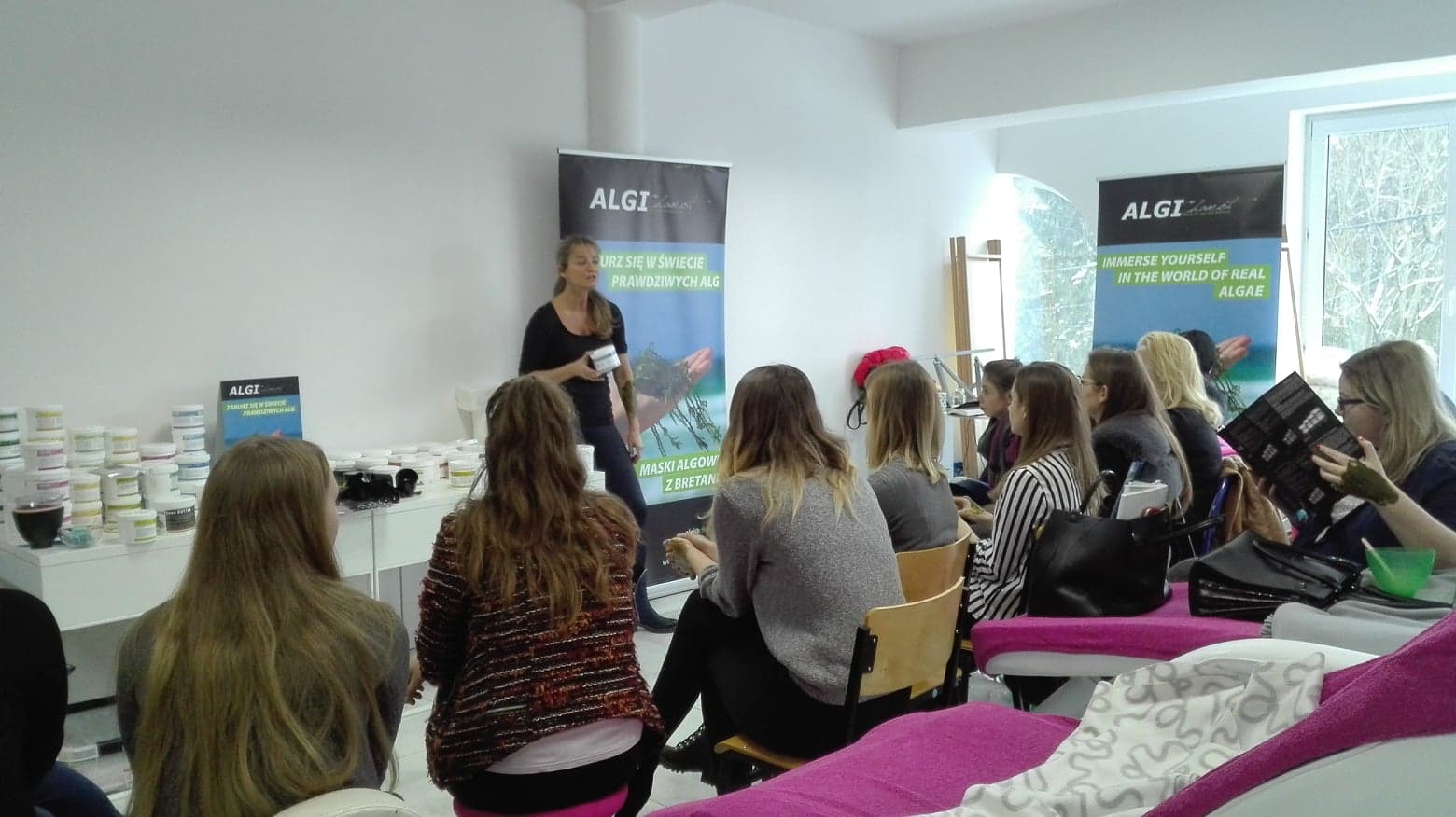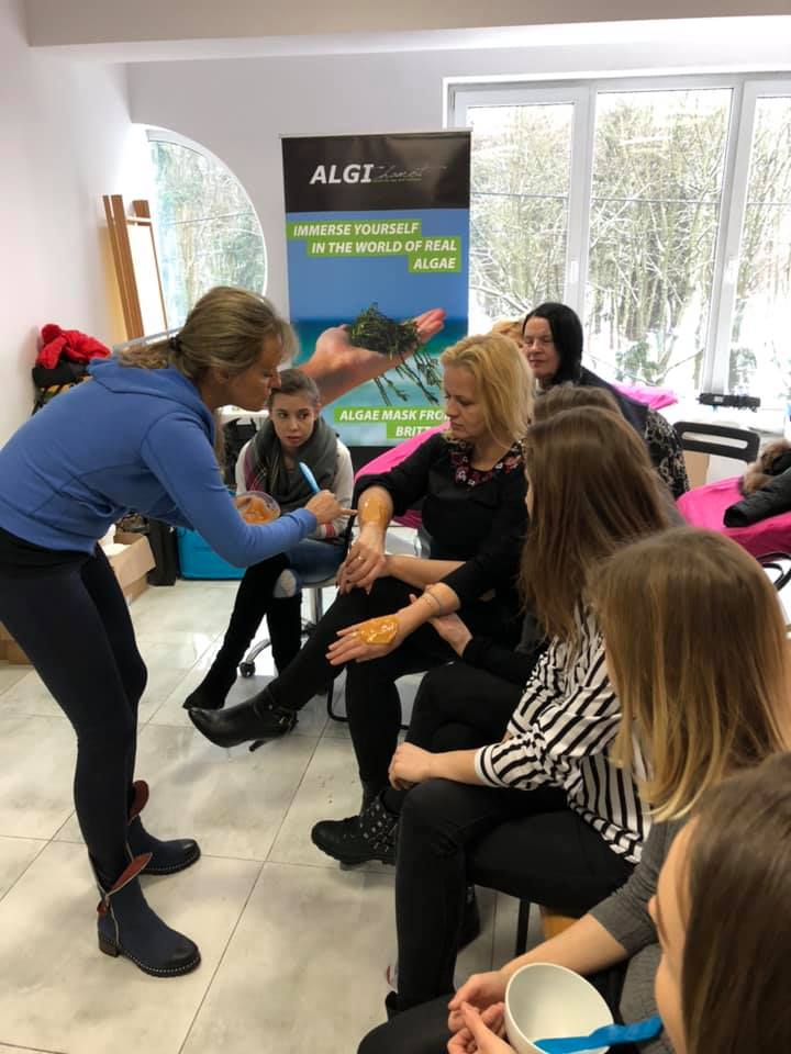 Słuchaczki miały okazję wypróbować szereg produktów typu: peel off, bodywrap, cream off mask, exfoliating jelly, exfoliating peel off mask, peeling, algi mikronizowane.