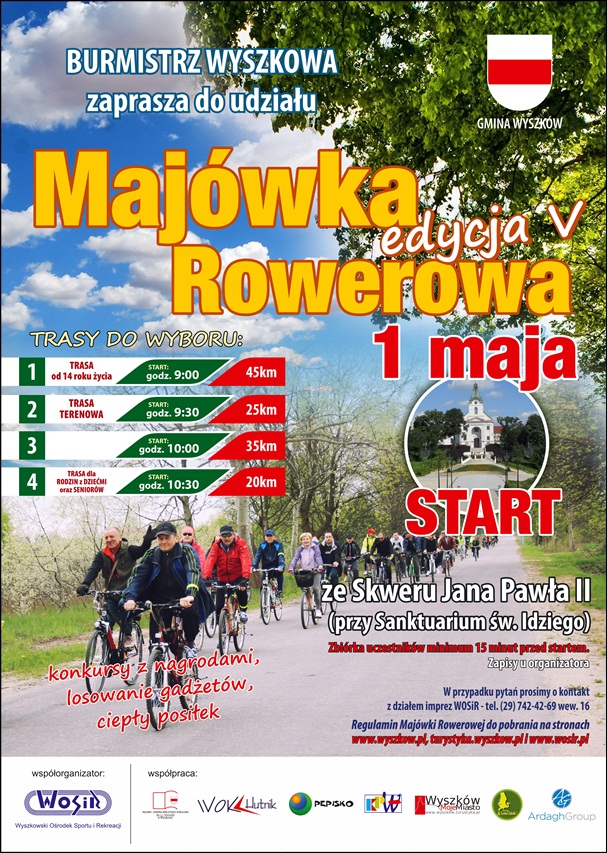 - 1 maja 2017r. w V Majówce Rowerowej – trasy 20km, 25km, 35km, 45km,